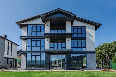 Продается вилла в стиле эко минимализм, где фасады выполнены из натуральных материалов, создающих гармоничную атмосферу. Общая площадь дома составляет 350 м² и включает два этажа с цоколем. Внутри предчистовая отделка и высота потолков 3,4 метра. Алюминиевое остекление достигает 2,7 метра и выполнено с раздвижными конструкциями.