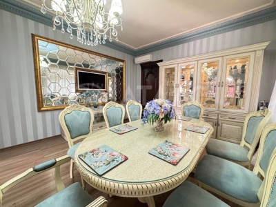 Продается современный дом площадью 500 м², построенный в 2022 году. Этот трехэтажный объект выполнен в дизайнерском стиле и полностью готов для проживания. Внутренняя отделка выполнена в американском формате, включая кухню и полностью укомплектованные санузлы.