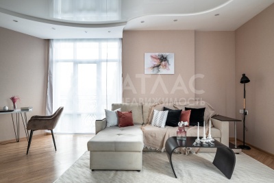 В квартире выполнен современный дизайнерский ремонт, по индивидуальному дизайн проекту, установлена премиальная техника фирм Kuppersberg, Maunfeld, Haier. Мебель европейских брендов, немецкая фурнитура Blum. Освещением занималось бюро «Цент света» установлены алюминиевые профили, теневые электро карнизы, регулируемый передвижной свет. В квартире всё продуманно до мелочей.