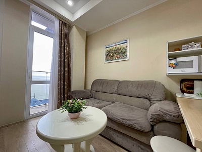 Отдельный плюс квартиры – открытая терраса с невероятно красивым видом на город и морскую акваторию. Похвастаться таким великолепием может далеко не каждый владелец элитного курортного жилья.