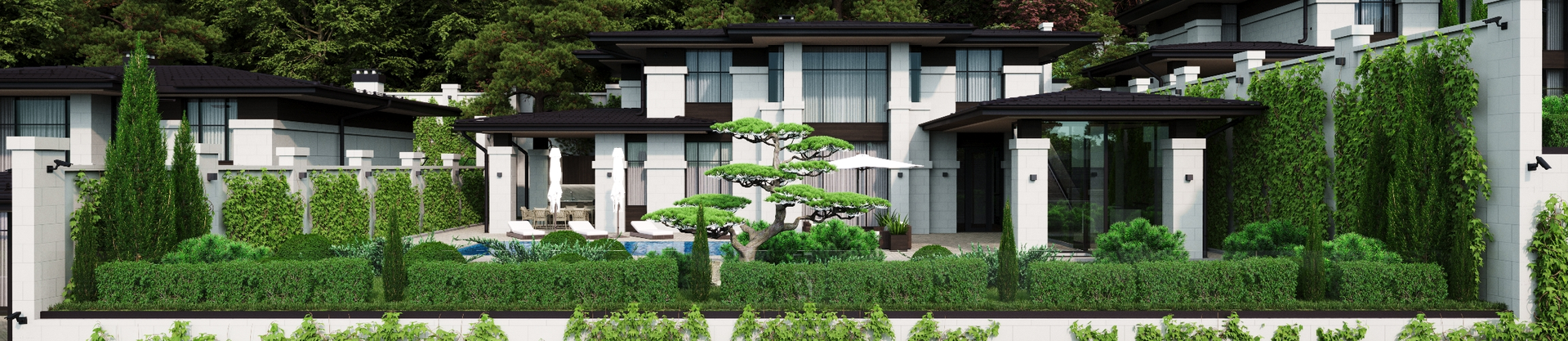 * Профессионально выполненный ландшафтный дизайн вокруг домов создает атмосферу умиротворения и гармонии.