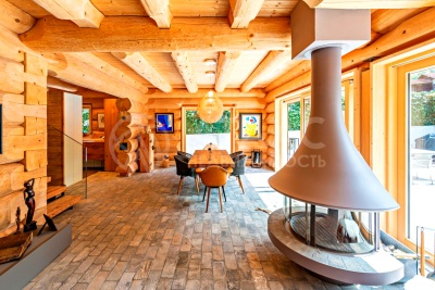 - просторный зал с камином,