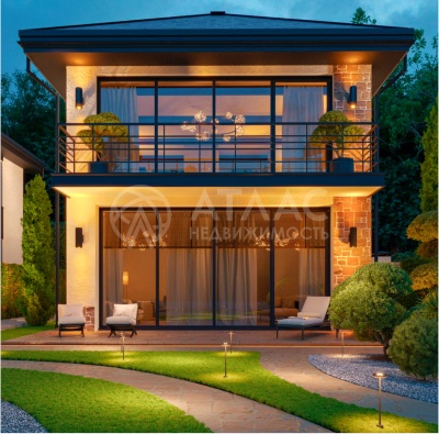* Современная архитектура: Дом возведен по монолитно-блочной технологии с использованием высококачественных материалов. Плоская кровля и панорамное алюминиевое остекление с термоизоляцией создают стильный и энергоэффективный облик.