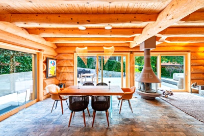 Каждый день, проведенный в этом доме, будет начинаться с созерцания величественных горных пейзажей. Панорамные окна гостиной и спален открывают поистине захватывающие виды, которые меняются в зависимости от времени суток и погоды, даря ощущение гармонии с природой. Вечером же вы сможете любоваться закатами, раскрашивающими горные склоны, или звездным небом, столь чистым вдали от городских огней.