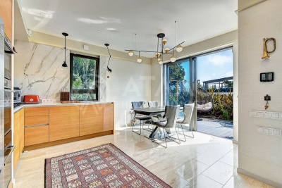 Внутри дома вас ждет безупречный интерьер, созданный с учетом последних тенденций в дизайне и с применением только высококачественных материалов. Каждый элемент – от отделки стен до осветительных приборов – тщательно подобран, чтобы создать атмосферу утонченной роскоши и домашнего уюта. Пространство наполнено светом и воздухом, где каждая зона функциональна и эстетически привлекательна.