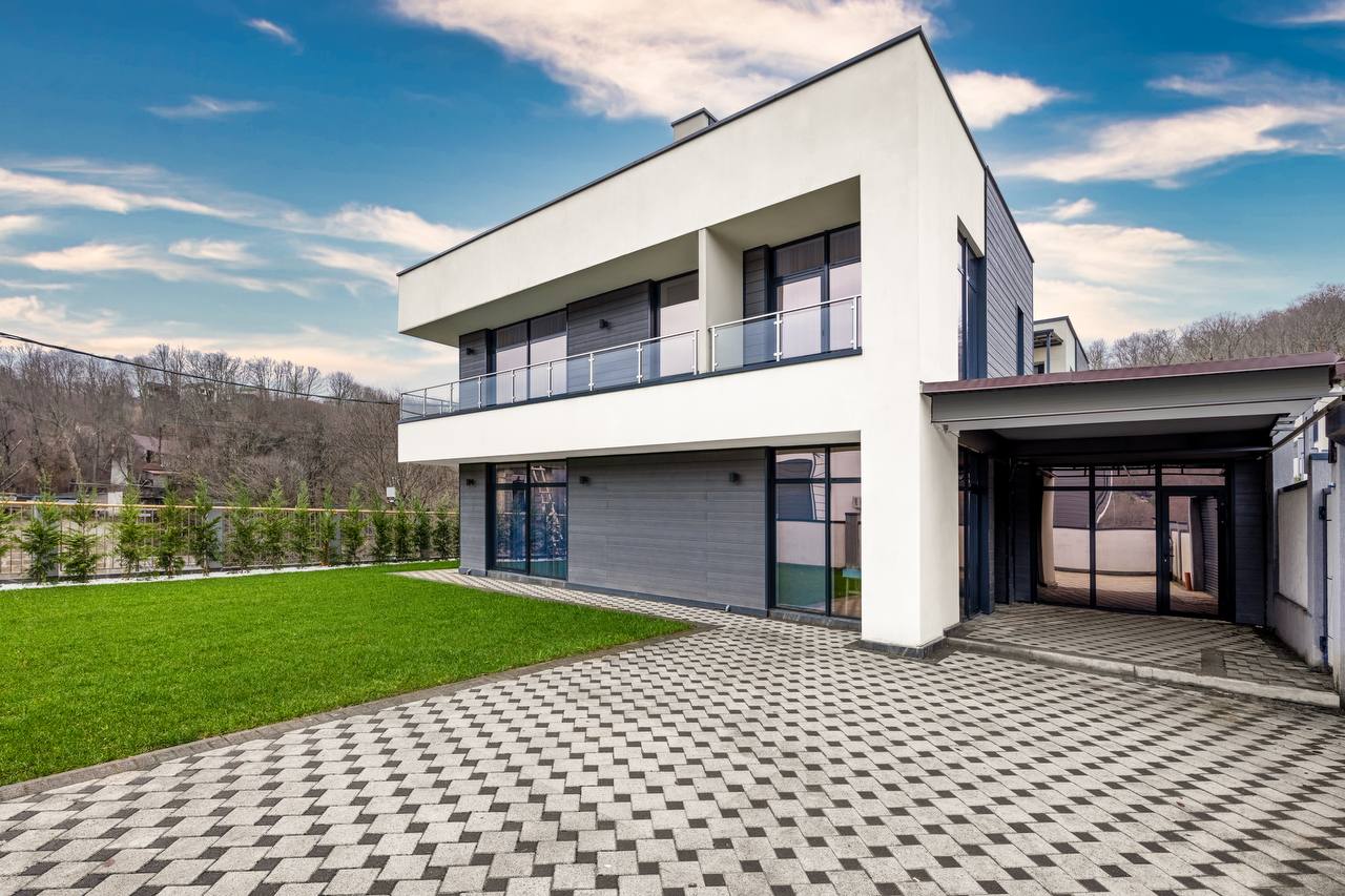 Продается стильный дом в коттеджном поселке в стиле Hi-tech. Площадь дома составляет 292 м² (основная площадь 200 м², терраса 92 м²), а участок — 4 сотки с правом ИЖС.