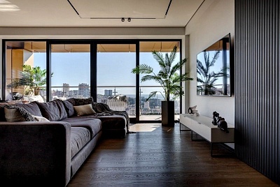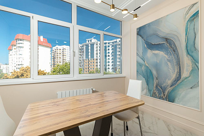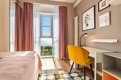 Каждое окно квартиры открывается потрясающим панорамным обзором морских просторов и величественных видов города Сочи. Особое удовольствие дарит широкая террасная зона, позволяющая насладиться чашечкой ароматного кофе утром или расслабиться вечером с бокалом вина, созерцая магический закат над водной гладью.