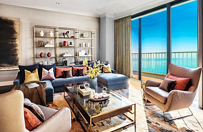 Апартамент расположен на шестом этаже, выполнен дизайнерский ремонт, в светлых тоннах. Качественная техника и мебель. Санузел совмещенный, выполнен из керамогранита. В прихожей панорамное зеркало, шкаф-купе, и телефон для связи с ресепшн. Можно выйти из апартамента на просторную лоджию, с которой видно море. Площадь апартамента 45.5м2, распланирован в отдельную спальню, и кухню-гостиную.