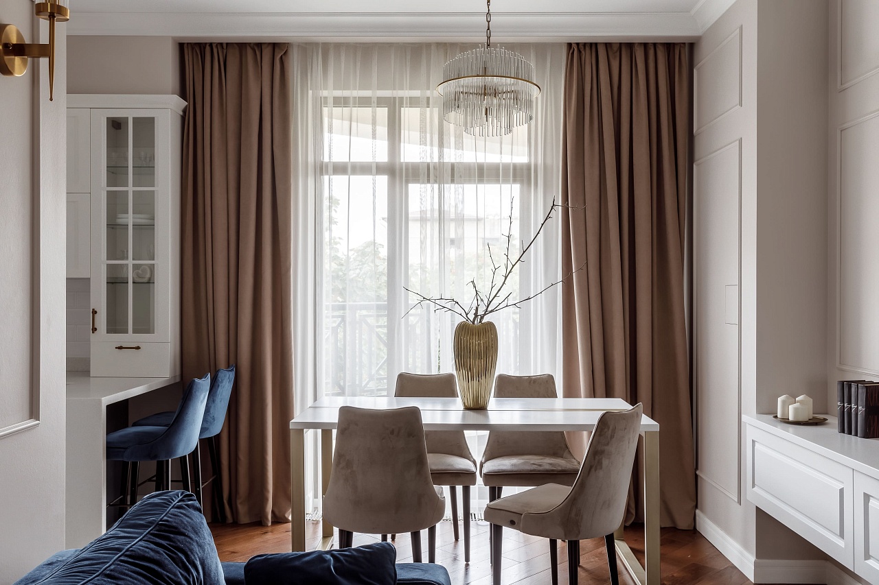 Современная планировка на 52 м2 — светлая и просторная квартира с высокими потолками и большими окнами, которые наполняют пространство естественным светом.