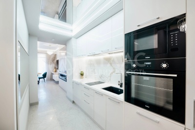 В квартире выполнен дорогой ремонт по индивидуальному дизайн-проекту, установлена элитная мебель и современная техника. Из каждого окна открывается потрясающий вид на море и зелень.