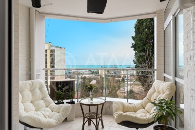 Просторный балкон с панорамным обзором, где ваше утро начинается с кофе под шум прибоя.