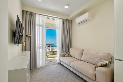Предложение включает апартаменты площадью 26 м2, полностью готовые для сдачи отельному оператору после дизайнерского ремонта. Каждый номер оборудован кухонной зоной и балконом с панорамным видом на море и горы.
