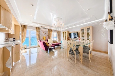 Просторная кухня и гостиная: Открытая планировка кухни и гостиной обеспечивает пространство для роскошных вечеринок и уютных семейных ужинов. Панорамные окна позволяют наслаждаться захватывающим видом на море и город даже внутри квартиры.