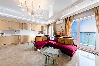 Квартира оборудована мебелью и техникой высокого качества, что создает комфортные условия для проживания. С просторной террасы открывается приятный вид на ночной город и море. А в собственном банном комплексе Вы сможете как следует отдохнуть.