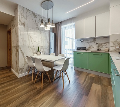 Гостиная совмещена с кухней, создавая открытое пространство для общения с семьей и друзьями. Просторная кухня оборудована всем необходимым для приготовления ваших любимых блюд. Здесь вы найдете современные бытовые приборы и стильную мебель, которая придаст вашему пространству изысканность и функциональность.