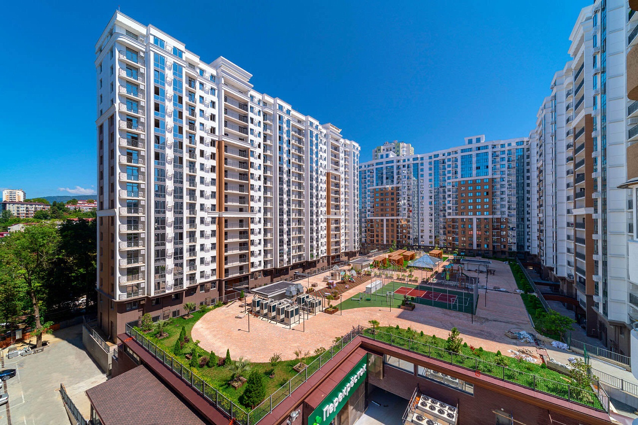 Внутри двора оборудованы детская и спортивная площадки, зоны отдыха и коммерческие помещения: рестораны, кофейни, магазины и бутики, пункты выдачи и собственный торговый центр.