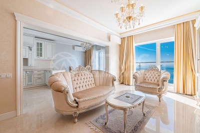 В продажу выставлена роскошная трехкомнатная квартира с панорамным видом на морскую акваторию.