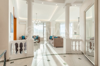 В квартире выполнен дорогой ремонт по индивидуальному дизайн-проекту, установлена элитная мебель и современная техника. Из каждого окна открывается потрясающий вид на море и зелень.